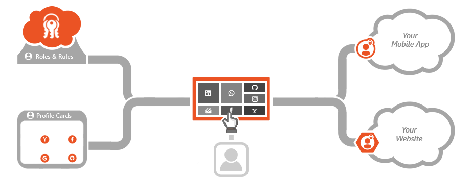 Users can create multiple Profile Card connected to a personal, social or bussiness account with costomizable fields.